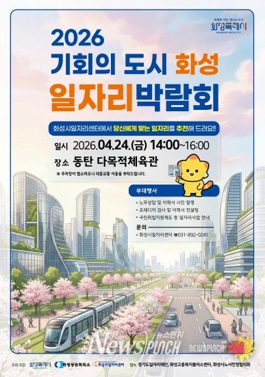 뉴스펀치 박상훈 기자 | 화성특례시는 오는 24일 동탄 다목적체육관에서 구인 기업의 인력난 해소와 구직자의 성공적인 취업을 지원하기 위한 ‘2026년 화성시 일자리박람회’를 개최한다. 이번 박람회는 화성특례시 출범 이후 강화된 지역 경제의 역동성을 바탕으로, 기업과 구직자 간 실질적인 매칭을 통해 체감도 높은 고용 성과를 창출하기 위해 마련됐다.