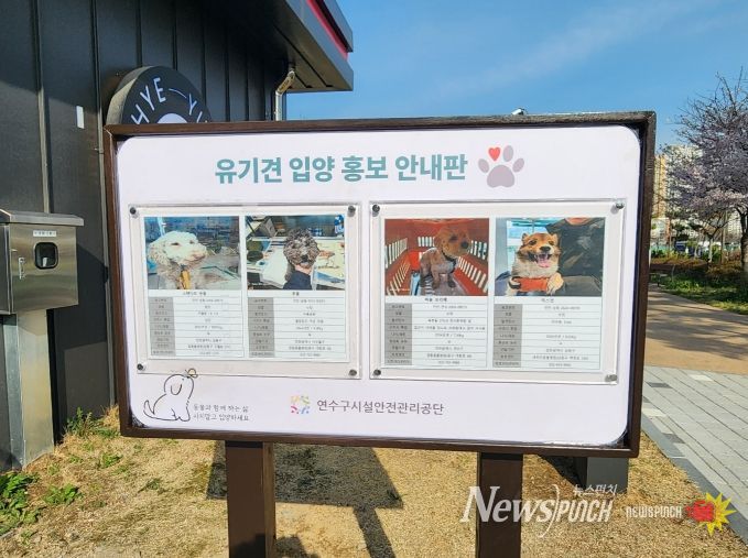 뉴스펀치 정홍균 기자 | 연수구시설안전관리공단은 유기동물에 대한 시민들의 관심을 높이고 입양 문화를 활성화하기 위해 지난 14일, 혜윰공원 반려견놀이터 일대에 유기견 입양 홍보 안내판을 설치했다고 밝혔다.