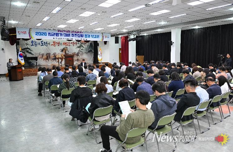 뉴스펀치 박세훈 기자 | 문경시는 4월 15일 시청 대회의실에서 이동욱 문경시장 권한대행 주재로 각 부서 지표담당자 120여 명이 참석한 가운데 ‘2026년 시군평가 추진상황 점검 보고회’를 개최했다.