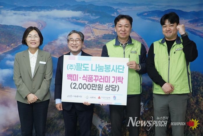 강상구 나주시장 권한대행은 “꾸준한 나눔을 실천해 주고 있는 ㈜팔도 나눔봉사단에 깊이 감사드린다”며 “기탁된 물품이 필요한 이웃들에게 소중히 전달될 수 있게 하겠다”고 밝혔다.