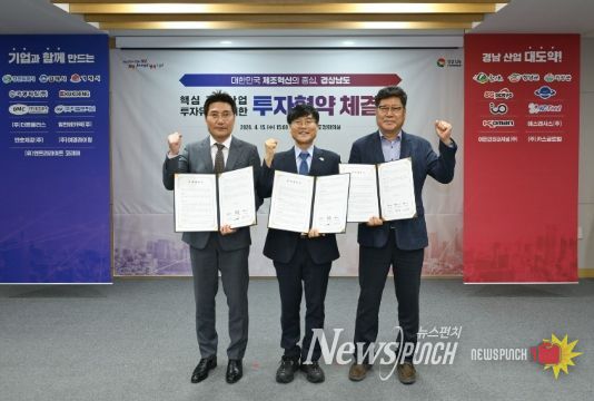 뉴스펀치 박세훈 기자 | 거제시는 15일 경남도청 도정회의실에서 ㈜더봄플러스, 에스엔시스(주)와 투자협약을 체결했다.
