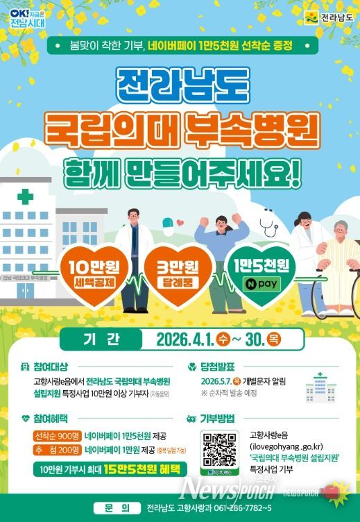 뉴스펀치 김용희 기자 | 전라남도가 고향사랑기부제를 활용해 지역 의료 인프라 확충에 나선다.