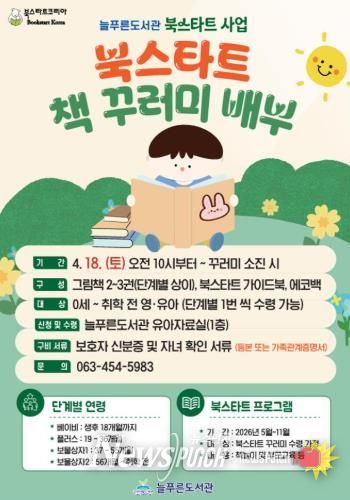 북스타트 꾸러미 신청 및 수령은 4월 18일부터 늘푸른도서관 1층 유아자료실에서 가능하며, 보호자 신분증과 자녀 확인이 가능한 등본 또는 가족관계증명서를 지참하여 현장에서 수령할 수 있다.