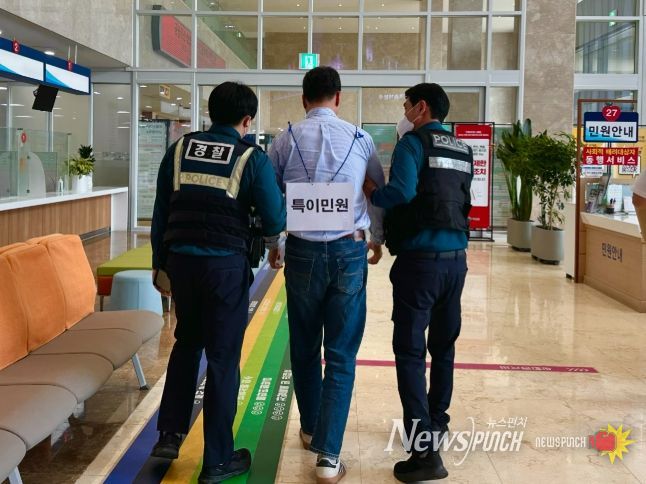 훈련은 민원 응대 과정에서 폭언과 폭력이 발생한 상황을 가정해 △상급자 개입을 통한 진정 및 중재 △사전 고지 후 녹음·녹화 △비상벨 작동 △피해 공무원 및 방문 민원인 대피 △가해 민원인 제압 및 경찰 인계 등 대응 매뉴얼에 따라 진행됐다.