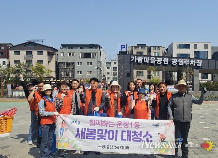 뉴스펀치 박상훈 기자 | 파주시 운정1동 통장협의회는 지난 15일 봄을 맞아 쾌적한 거리 환경 조성을 위해 가람상가 일대에서 청결활동을 실시했다.