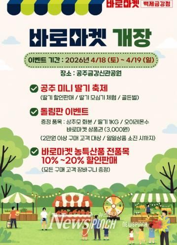 뉴스펀치 이현승 기자 | 공주시는 오는 4월 18일부터 금강신관공원 일원에서 ‘2026년 바로마켓 광역 직거래 장터 ‘바로마켓 백제금강점’을 개장하고 본격 운영에 들어간다고 밝혔다.