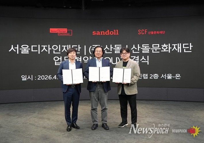 서울디자인재단은 10월 '서울디자인위크 2026' 기간 중 실무 디자이너를 위한 ‘디자인 컨퍼런스’를 공동 추진하기 위해 AI 콘텐츠 플랫폼 기업인 ㈜산돌 및 산돌문화재단과 4월 15일 DDP에서 3자 업무협약(MOU)을 체결했다. 이번 협약은 K-디자인의 글로벌 경쟁력을 높이고, 실무 중심의 디자인 담론과 협업 생태계를 넓히기 위한 협력의 일환이다.