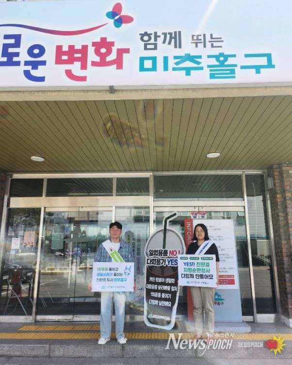 뉴스펀치 정홍균 기자 | 인천 미추홀구는 최근 국제 정세 불안과 자원·에너지 수급 불확실성이 확대됨에 따라, 공공기관이 선도적으로 자원 절약과 환경보호에 나서기 위해 ‘청사 내 일회용 컵 반입금지 캠페인’을 실시했다고 16일 밝혔다.