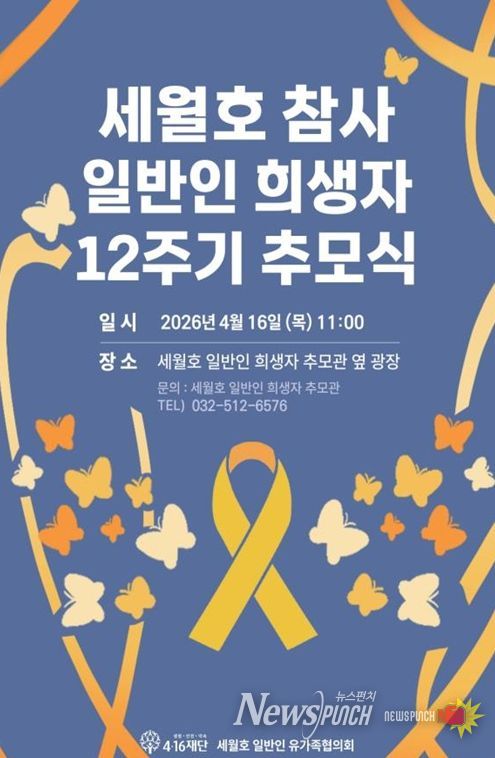 뉴스펀치 정홍균 기자 | 인천광역시는 4월 16일 오전 11시 인천가족공원 내 세월호 일반인 희생자 추모관 인근 광장에서 세월호 참사 일반인 희생자 12주기 추모식을 개최했다고 밝혔다.