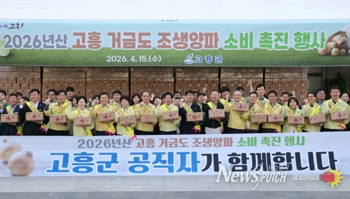 뉴스펀치 김용희 기자 | 고흥군은 2026년산 조생양파 출하시기 산지 가격 하락과 소비 위축에 대응하고자 지난 15일 고훙군청 앞 광장에서 공직자가 참여하는 소비촉진 행사를 추진했다.
