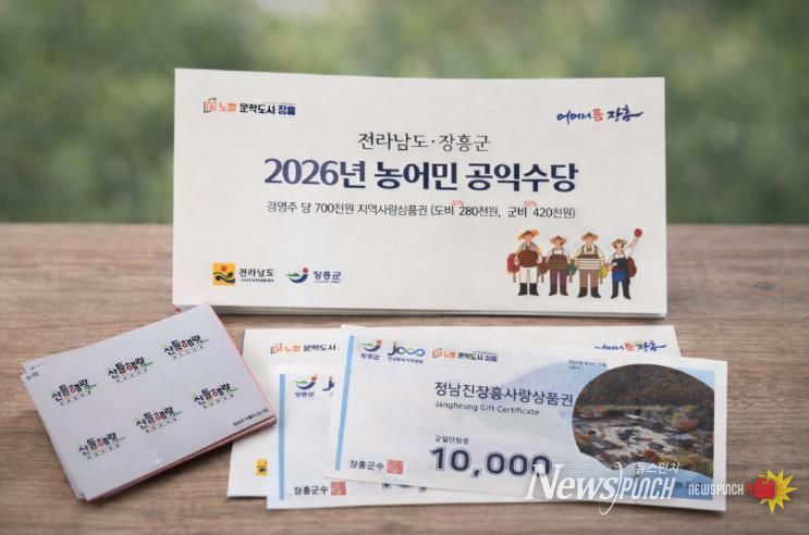 뉴스펀치 김용희 기자 | 장흥군은 오는 4월 22일부터 28일까지 지역 농어민을 대상으로 ‘전남형 농어민 공익수당’을 경영주당 70만 원씩 지급한다고 밝혔다.