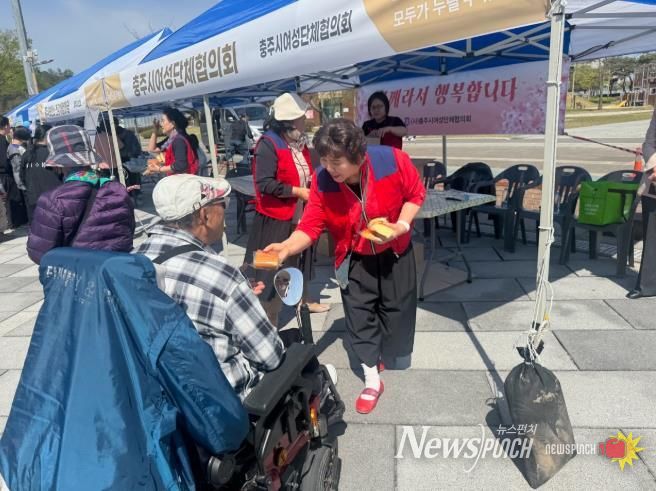 뉴스펀치 이현승 기자 | (사)충주시여성단체협의회는 16일 제46회 장애인의 날을 맞아 수제빵 1,000여 개를 전달하는 ‘이웃사랑 빵 나눔행사’를 진행했다.