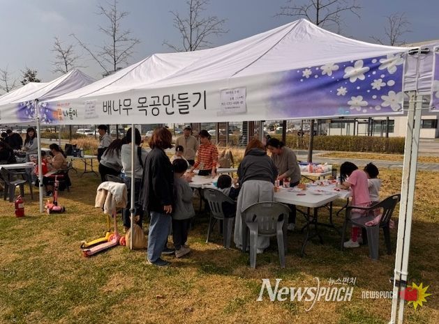 뉴스펀치 박상훈 기자 | 평택시는 지난 11일과 12일 이틀간 함박산중앙공원 배꽃 나들이 행사에서 목재 체험 부스를 운영했다.