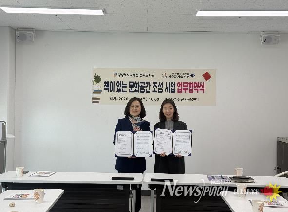 뉴스펀치 박세훈 기자 | 경상북도교육청 성주도서관은 4월 16일 성주군 가족센터에서 지역 생활밀착형 독서 환경 조성을 위한 '책이 있는 문화공간 조성'사업을 위한 업무협약을 체결했다.