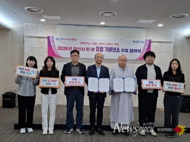 뉴스펀치 박세훈 기자 | 양산시립박물관과 통도사 성보박물관(관장 진응 스님)은 16일 양산시립박물관 1층 대강당에서 2026년 민·관 청렴 거버넌스 구축을 위한 협약을 체결했다.