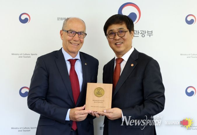 뉴스펀치 박세훈 기자 | 2027 충청 유니버시아드대회 조직위원회는 16일 레온즈 에더(Leonz Eder) 국제대학스포츠연맹(FISU) 회장단과 강 위원장이 최휘영 문화체육관광부 장관을 예방하고, 대회의 성공 개최를 위한 정부 지원 방안 등을 논의했다고 밝혔다.