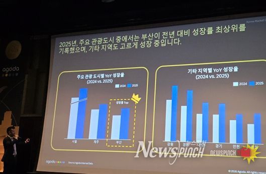 아고다(Agoda)는 다양한 국적의 여행객 유입 확대와 함께 전년 대비 숙소 검색량이 84퍼센트(%) 증가하는 등 한국 여행 수요가 지속적으로 늘고 있으며, 부산시의 적극적인 관광 정책과 지원이 숙박업계 경쟁력 강화와 방문객 유치 확대에 긍정적인 영향을 줬다고 밝혔다.