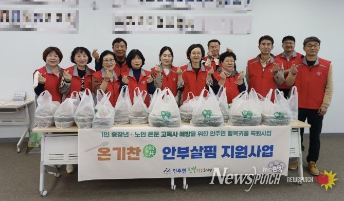 뉴스펀치 이현승 기자 | 아산시 인주면 행복키움추진단은 지난 16일 1인 중장년 및 노인 가구의 사회적 고립을 방지하고 고독사를 예방하기 위한 읍면동 특화사업인 '온기찬 안부살핌 지원사업'을 실시했다.