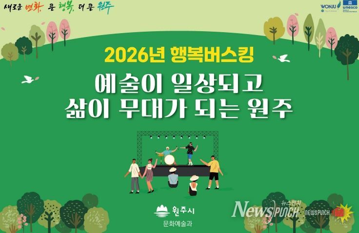 뉴스펀치 조평훈 기자 | 원주시는 지역 예술가들의 공연 기회를 확대하고 시민들에게 다양한 문화서비스를 제공하기 위해 ‘2026년 상반기 원주행복버스킹’을 운영한다.