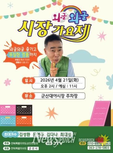 뉴스펀치 정홍균 기자 | 전통시장과 지역 상권에 활력을 더하는 ‘와글와글 시장가요제’가 군산 대야전통시장에서 열린다.