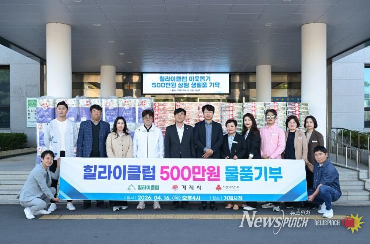 뉴스펀치 박세훈 기자 | 지난 16일 힐라이클럽은 지역 내 취약계층을 위해 500만 원 상당의 생필품을 기탁하며 따뜻한 나눔을 실천했다.