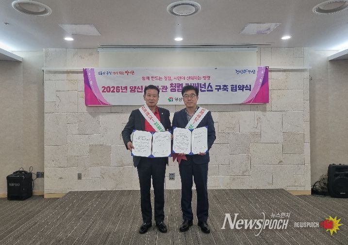 뉴스펀치 박세훈 기자 | 양산시 시민통합위원회(위원장 박원현)와 양산시 소통담당관은 2026년 4월 16일, 양산시립박물관에서 민‧관 청렴거버넌스 공동 협약식을 체결했다. 이번 협약은 청렴한 행정문화 정착과 시민과의 신뢰 구축을 목표로 마련됐다.