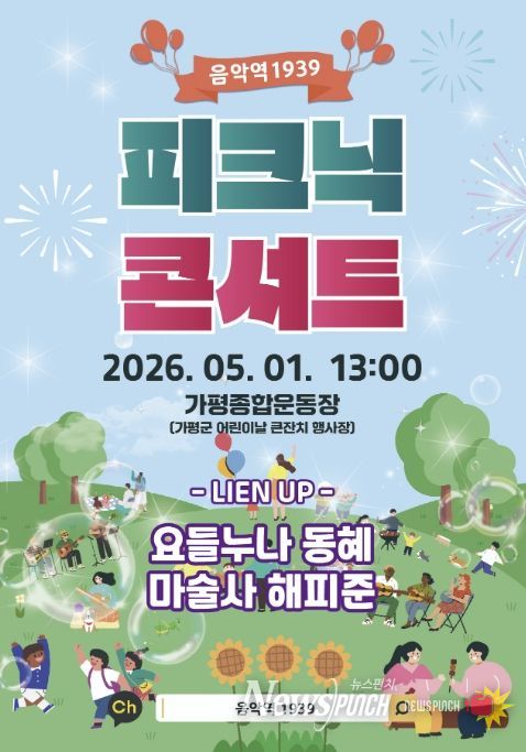 가평군은 오는 5월 1일 오후 1시 가평종합운동장에서 ‘피크닉 콘서트’를 개최한다고 밝혔다. 이번 공연은 ‘제15회 가평군 어린이날 큰잔치’의 축제 분위기를 조성하고, 주민들에게 야외 휴식 공간에서 즐기는 문화 향유 기회를 제공하기 위해 기획됐다.