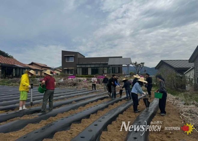 뉴스펀치 조평훈 기자 | 춘천시 농업기술센터와 춘천시 청년4-H연합회가 17일 신북읍 율문리 일원 농지 991㎡에서 감자 정식 작업을 마치고 공동과제포 영농 활동에 들어갔다.
