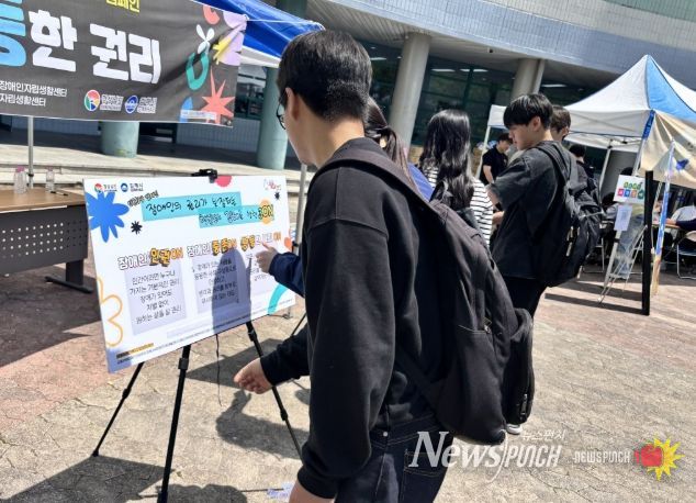 뉴스펀치 박세훈 기자 | (재)김해시복지재단 김해시장애인종합복지관(관장 류재복)은 김해장애인복지기관네트워크 합동으로 지난 13일부터 15일까지 3일간 지역 내 대학생들을 대상으로 장애인식개선 캠페인 ‘동정이 아닌, 동등한 권리’을 진행했다.