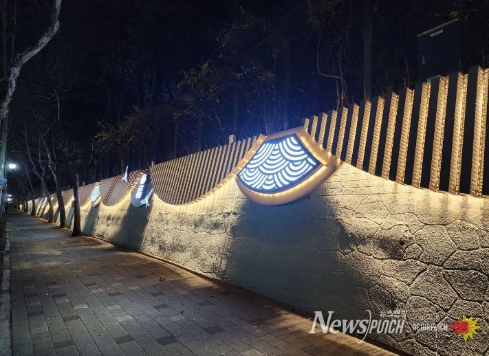 이에 북구청은 단순 정비를 넘어 연암공원 일대의 역사와 문화를 반영한 디자인을 적용한 ‘테마가 있는 옹벽’으로 재탄생시켰다. 연암산에 자리 잡은 구암서원 기와지붕의 아름다움을 현대적으로 재해석해 옹벽 상부에 흐르는 곡선 형태의 디자인시설물을 설치함으로써 전통과 현대의 아름다움이 어우러지는 경관을 구현했다.
