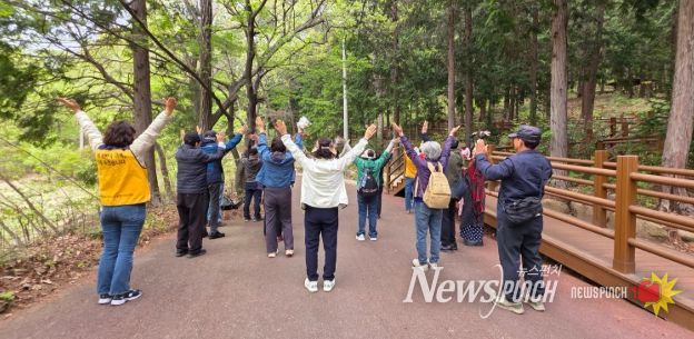뉴스펀치 김윤걸 기자 | 울산 동구 치매안심센터는 4월 17일 국립 대운산 치유의 숲에서 치매 및 경도 인지장애 진단자 가족을 대상으로 ‘산림 치유 프로그램’을 운영해 큰 호응을 얻었다.