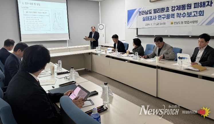 뉴스펀치 김용희 기자 | 전라남도는 일제 강제 동원 피해 진상규명과 국가 차원의 보상지원 건의를 위해 17일 도청에서 밀리환초 강제 동원 피해자 실태조사 연구용역 착수보고회를 개최했다.