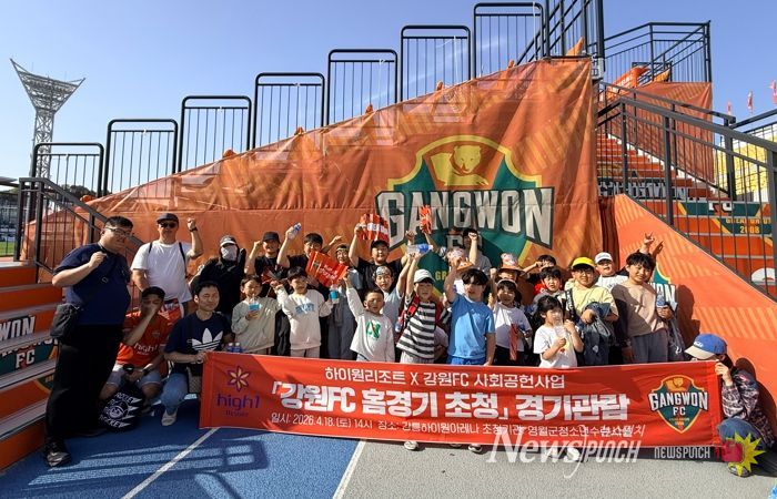 뉴스펀치 조평훈 기자 | 영월군청소년수련시설은 지난 18일 강릉종합운동장에서 열린 ‘2026 K리그1 강원FC vs 전북 현대 모터스’ 경기에 청소년 및 학부모 30여 명이 참여해 열띤 응원 활동을 펼쳤다고 밝혔다.