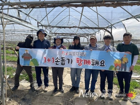 뉴스펀치 조평훈 기자 | 강원특별자치도 축산기술연구소는 본격적인 농번기를 맞아 4월 18일, 춘천시 사북면 고성리 포도 재배 농가를 찾아 ‘농촌 일손 돕기’ 봉사활동을 실시했다.