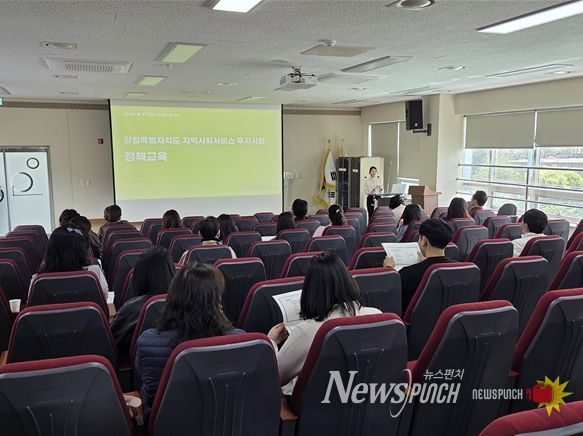 뉴스펀치 조평훈 기자 | 강원특별자치도 사회서비스원 소속 ‘지역사회서비스지원단’은 2026년 4월 17일, 횡성군청소년수련관에서 지역자율형 사회서비스 투자사업 및 산모신생아 건강관리 지원사업 제공자를 대상으로 4월 보수교육을 실시했다.