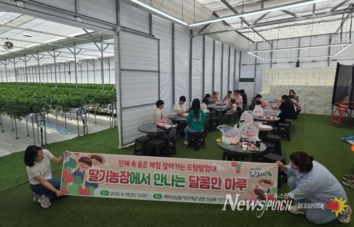 이어 18일에는 7가정, 18명이 참여한 가운데, 남면 베리신남딸기 농장에서 ‘딸기농장에서 만나는 달콤한 하루’ 프로그램이 진행됐다.