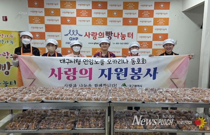 뉴스펀치 조평훈 기자 | 대구광역시 소속 ‘연암노을 오카리나 동호회’는 4월 20일 장애인의 날을 맞아, 4월 18일 서구 소재 ‘사랑의빵나눔터’에서 이웃 사랑을 실천하는 제빵 나눔 봉사활동을 펼쳤다.