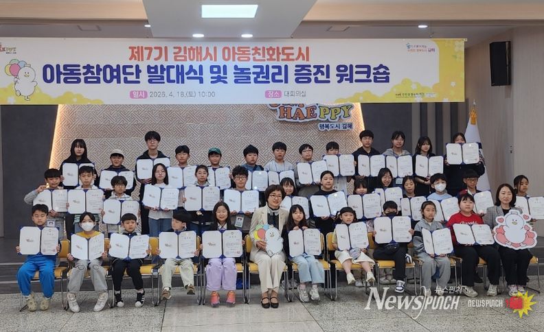 뉴스펀치 박세훈 기자 | 김해시는 지난 18일 시청 대회의실에서 아동의 참여권이 실현되는 아동친화 도시 조성을 위한 ‘제7기 아동참여단 발대식 및 아동 놀권리 증진 워크숍’을 개최했다고 밝혔다.