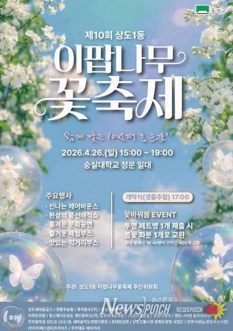 뉴스펀치 박상훈 기자 | 동작구는 오는 26일 숭실대학교 정문 일대(상도로 369)에서 ‘제10회 이팝나무 꽃 축제’를 개최한다고 밝혔다.
