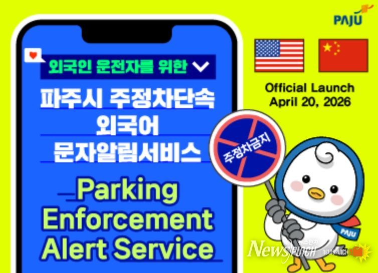 뉴스펀치 박상훈 기자 | 파주시는 4월 20일부터 외국인 운전자를 대상으로 한 ‘주정차 단속 외국어 문자 알림 서비스’를 시행한다.