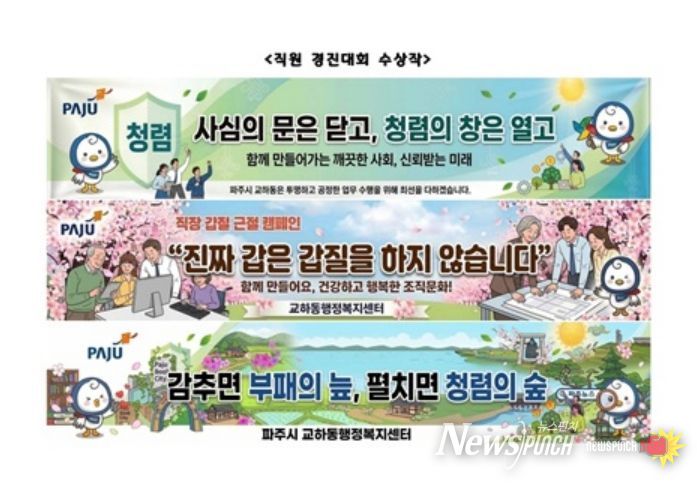 뉴스펀치 박상훈 기자 | 파주시 교하동은 지난 17일, 교하동 행정복지센터에서 소속 직원들을 대상으로 청렴 의식을 높이고 다가오는 지능정보화 시대에 발맞춘 인공지능(AI) 활용 역량을 강화하기 위해 ‘인공지능(AI) 청렴 현수막 경진대회’를 개최했다.