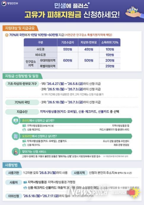 1차 신청(기초·차상위·한부모)은 오는 4월 27일부터 5월 8일까지 진행되며, 2차 신청(소득하위 70%)은 5월 18일부터 7월 3일까지 접수한다.