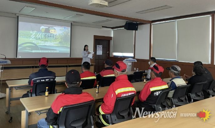 이번 교육에서는 봄철 졸음운전으로 인한 교통사고 예방 행동요령과 차량 운행 시 준수해야 할 교통안전 수칙을 안내했으며, 환경정비 업무 시 사용하는 청소 도구와 장비의 올바른 사용 방법, 작업 중 발생할 수 있는 위험요인 대응 요령 등을 교육해 현장 안전 대응 능력을 높였다.
