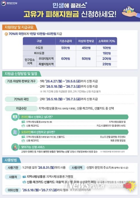 이번 지원금은 고유가·고환율·고물가로 어려움을 겪는 시민들의 생활 안정을 돕고, 지역 내 소비를 촉진해 소상공인과 자영업자의 매출 회복에도 힘을 보태기 위한 조치다.
