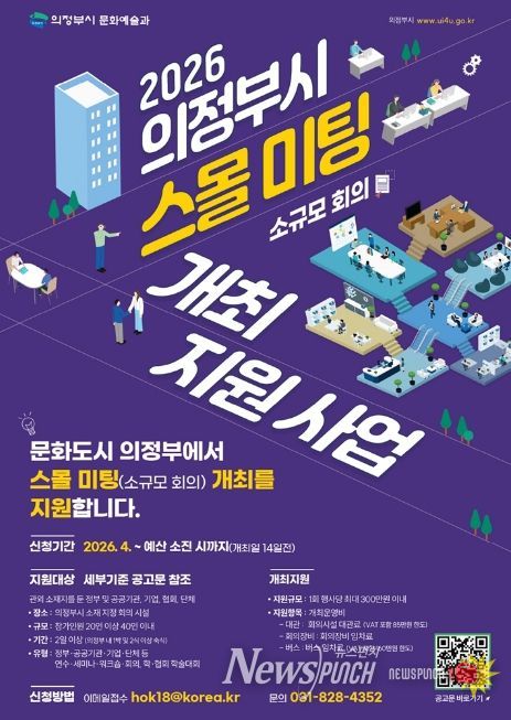 뉴스펀치 박상훈 기자 | 의정부시는 관외에 소재지를 둔 기관 및 단체 등을 대상으로 ‘2026 의정부시 스몰미팅(소규모 회의) 개최 지원사업’을 추진한다.