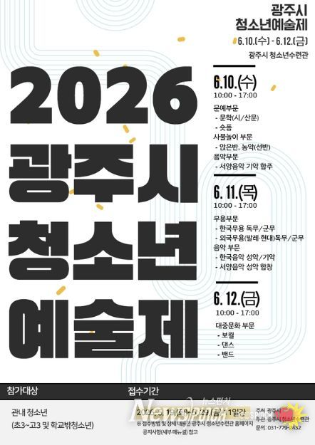 뉴스펀치 박상훈 기자 | 광주시는 ‘2026년 광주시 청소년예술제’ 참가자를 모집한다고 20일 밝혔다.