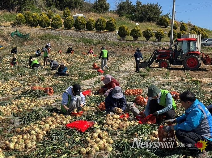 뉴스펀치 김용희 기자 | 여수시는 지난 16일 농번기를 맞아 일손 부족으로 어려움을 겪고 있는 화양면 안포리 소재의 양파 재배 농가를 찾아 봄철 농촌일손돕기 봉사활동을 실시했다고 밝혔다.