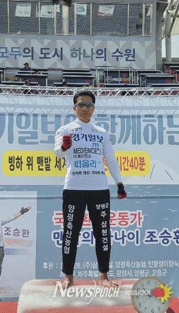 뉴스펀치 박상훈 기자 | 양평군은 지난 19일 경기도 수원종합운동장에서 양평군 홍보대사이자 국제 환경운동가로 활동 중인 ‘맨발의 사나이’ 조승환 씨가 인간의 한계를 넘어서는 기록을 세웠다고 밝혔다.