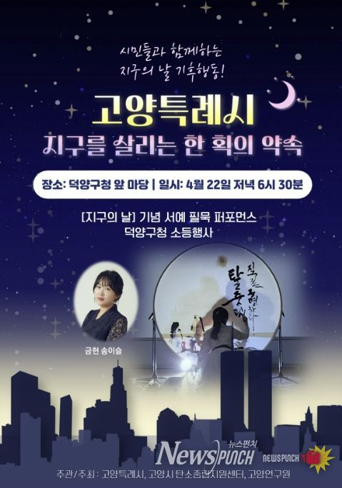 뉴스펀치 박상훈 기자 | 고양특례시가 제56주년 지구의 날을 기념해, 오는 22일 저녁 8시부터 10분간 고양시 전역에서 소등행사를 진행한다.