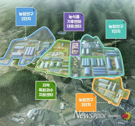 해남군은 올 하반기 착공하는 국립기후변화대응센터를 비롯해 전라남도 특화과수지원센터, 농업연구1, 2, 3단지 등 연관시설을 집적화해 국내 최대 규모 군 농업연구단지를 조성하고 있다. 총 82ha 규모로, 1단지에는 고구마연구센터와 청년농업인 임대농장, 과학영농 실증시험 기반시설 등이 이미 완공되어 운영 중이다.